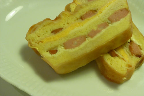 La preparación es sencillísima. Si queréis ver el paso a paso, podéis seguir las indicaciones del pastel de jamón y queso que es igualito a éste pero con salchichas de franckfurt.